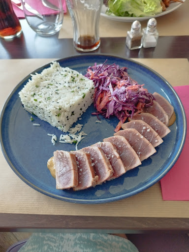 Read moreLe plat était dans une assiette chaude mais il n'y avait que l'assiette de chaude.lanpuree était froide. L'huile vierge ne contenait pas de basilic, estragon et cerfeuil mais du persil. Pas non plus de graine de coriandre, pas d'ail ou séchée au mieux et pas de jus de citron. Pavé de thon, qui baignait dans cet huile. Vraiment pas top. Mon collègue a une des frites beaucoup trop cuite...