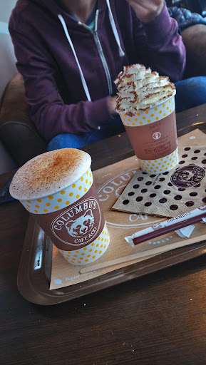 Read moreAvis modifié Ce jour pour un menu petit déjeuner au Colombus café. Sa situation centrale est plutôt chouette et l'intérieur avec différents espaces et possibilité d'amener son ordi pour travailler un peu. Manque de personnel je dirais une salariée seule en caisse a gérer les commandes sur site ,le téléphone et les commandes internet du coup un peu d'attente mais rien de grave quand pas pressés. Elle a fini par appeler du renfort une autre dame blonde moins souriante ( qui devait elle aussi gérer en commande en arrière salle). Les boissons sont bonnes et le cinnamon Roll aussi. Les tarifs restent élevés 6,50€ une boisson chaude une viennoiserie et un verre de...
