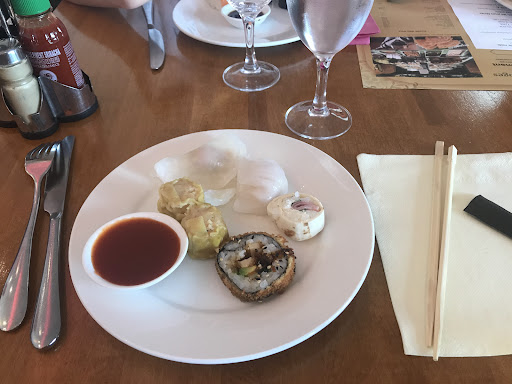 We visited for the all-you-can-eat buffet at lunchtime. We arrived around 1.30pm and it was still very busy, so we were lucky to get a table for five at that time without a reservation. The selection of buffet food is wide and most of it is of a high quality. You can choose from tuna and salmon sushi, various meat dishes including pork in caramel, beef in onions, chicken in curry sauce, to fish and seafood such as prawn salad, shell-on king prawns, squid, and many vegetable and rice dishes, including pot stickers, glutinous rice dumplings, and deep fried spring rolls and Vietnamese-style spring rolls. The price is excellent value (around €13 for all-you-can-eat-food plus drinks), but I recommend reserving a table, especially...
