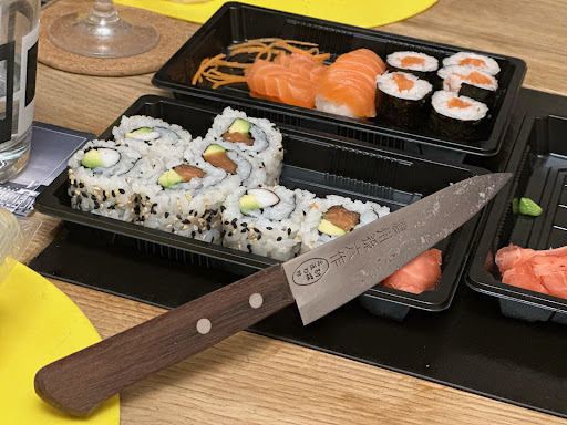 deuxième fois que nous venons, en soi- même les maki/ sushis sont bons ( après ils sont symple et très peu de choix) surtout si vous cherchez a manger beaucoup pour pas cher. Très déçu sur le menu kyoto loft (42€! on peut voir des photos) car beaucoup trop de saumon par rapport au thon ( seulement 4 petits bouts de sashimi, 2 sushi et 6 makis). Bout coupé très grossièrement. Et malheureusement je suis tombé sur un sushi au thon qui n'était plus trop brillant ( un reste oublié en cuisine pas au frais ?), soupsons confirmé quand j'ai vu que pour les commandes à emporté il laissait le choux ( dans leur boîte) sur le comptoir tout le long de notre repas ! Aucun arrangement n'est possible !!!! climatisation qui marche tellement mal que la salle devenait très humide ( manque criant d'entretien) dès lors qu'on regarde un peu les details, malgré une décoration sobre,il y a plein de poussière. Malgré la grande salle derrière, on préfère nous entasser tous devant ( a côté d'un radiateur très sale)... Bref en gros si vous avez envie de commander de simples makis / sushi pourquoi pas. Mais pour ce qui est de l'expérience en salle c'est un 0!!!! Ce sont des patrons qui se font beaucoup de marges sur tout et ne s'investissent pas plus ( surtout niveau hygiène... où juste faire intervenir un spécialiste pour la clim) ps : prennent pas la carte tiket restaurant, et la cb qu'à...