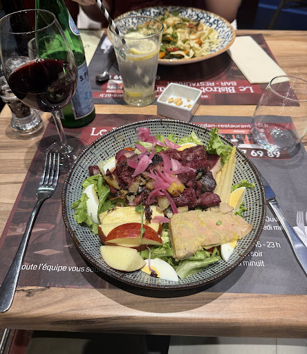 Je m explique, on s installe, on commande l apéritif avec une tartine à partager, on fini l' apéro le serveur met sa mise en place vin pain etc... Je redemande la tartine à partager au cas où cela a été oublié. Il semblait que oui.. Toujours pas de tartine en vue...les entrées arrivent. (Mon premier plat choisi comme entrée (j ai un bon coup de fourchette 😅) arrive comme une entrée de menu!) Je redemande notre tartine et renvoi les entrées. La tartine arrive enfin🤤 ( très bonne, elle s'est fait désirée) on nous débarrasse, les entrées arrivent enfin. La p'tite limousine, les gésiers étaient secs! Quand à nos entrées réparties, ben pour moi c était la même assiette qu'au menu donc 4 gambas en feuille de brick j ai du insisté a nouveau pour avoir à la carte même si entre-temps le serveur m a dit qu il l'a faisait en "entrée " ( pas de tarifs sur le menu...) Con comme je suis j insisté à presque 20€ le plat pour avoir une gambas chaude en plus et les autres quasi froide j aurai mieux fait de la prendre leur assiette... Je peu vous dire que je les aient dégusté rapidement...