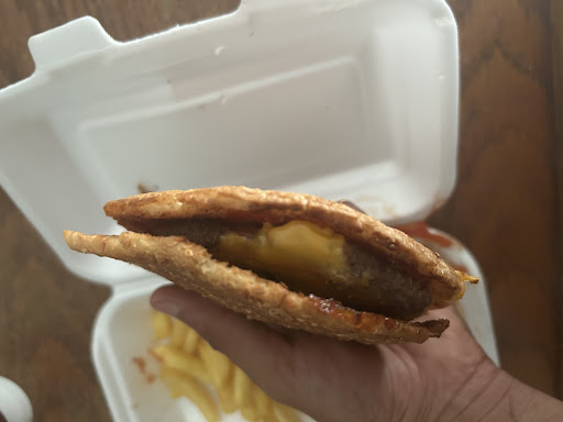 Hier, on a commandĂ© pour 5 personnes, pensant retrouver cette qualité⊠mais grosse dĂ©ception. DĂ©jĂ , la commande nous a coĂ»tĂ© 50 âŹ, donc on sâattendait Ă ĂȘtre bien servis. Mon petit frĂšre a pris un burger, mais câĂ©tait tout plat, vraiment bizarre : ça ressemblait plus Ă un croque-monsieur quâĂ un vrai burger, avec trĂšs peu de pain et un steak minuscule. Une vraie blague ce burger.
