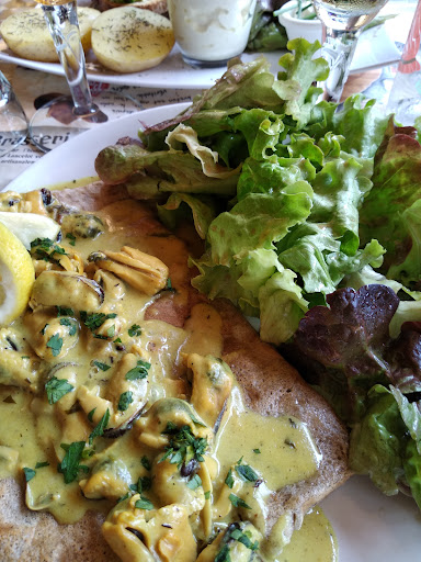 Les crêpes au sarrasin, bien que généreusement garnies avec des produits d’une qualité irréprochable, m’ont déçu par leur pâte. Elle manquait de cuisson, de croustillant, et de ce goût beurré typique qui donne tout son charme aux véritables galettes bretonnes. Ce détail a freiné l’authenticité du plat, mais heureusement, la fraîcheur et la saveur des ingrédients intérieurs ont rattrapé cette imperfection.