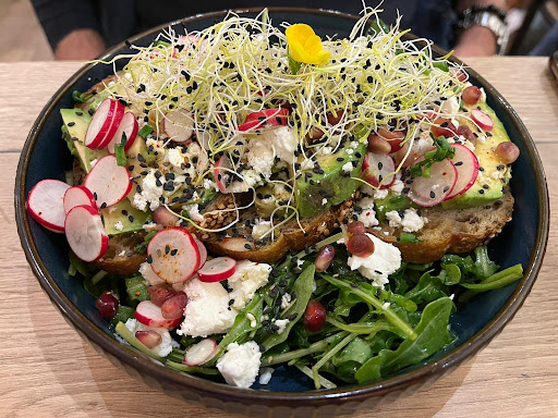 Super surprise in this little magical city! We looked for a place for dinner online and run into this place. Got to say that if we just walked by without knowing this place, we probably would have not been eating here 😅 because from the outside you don’t get to see the charm of the place. But when you go inside you discover a lovely warm place, 2 floors and a really nice welcoming deco. We sat on the top floor which I find nicer than the first. Really nice people and service, a simple menu with many healthy choices and the most important thing is that the products are fresh and in good quality. So if you are looking for a nice place to eat well and healthy with a great service, check out this place ! Prices are reasonable, attached here a photo of the menu so you can see for yourself. During the high season I recommend you to book your place in advance because there are not many tables....