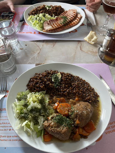 Great food simply cooked - you get a bottle of red wine and a litre bottle of cider along with a choice of 4 starters and 4 mains with a choice of 4 sweets for an amazing 12 euros each Myself and my girlfriend paid 24 euros for both of us to eat great food Well done - great service - great food We paid 70 euros in Paris for 2 pizzas and a beer each - that were nothing special So if your not too fussy then go to this eatery and enjoy the food in working class environment Full of truck drivers who...