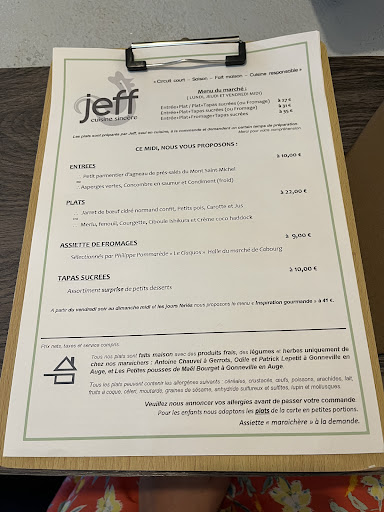 Read moreEnfin j’ai pu découvrir ce restaurant qui attise ma curiosité depuis plusieurs années à Cabourg, sans réussir à obtenir une réservation lors de mes venues. Cette fois je m’y suis prise à l’avance via Messenger. Le contact a été très aisé. Nous nous y sommes rendus pour un déjeuner en semaine. La carte propose 2 choix de plat pour chaque étape. On le sait, une carte courte est souvent gage de qualité et fraîcheur des produits. C’est exactement le cas pour Jeff Cuisine Sincère. Quelle merveille gustative, du début à la fin ! Chaque ingrédient est sublimé ! L’expérience a été si belle que nous y sommes retournés durant le we, avec une carte différente mais tout aussi succulente. En plus d’une cuisine pointue, l’accueil est chaleureux et attentionné. La salle présente au fond un coin pour les enfants et les sanitaire sont équipés d’une table à langer, j’ai trouvé cela très prévenant. On en a déjà parlé autour de nous et on reviendra pour sûr 😁 Mille bravos pour votre...
