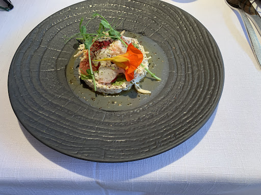 Read moreSituation de l'établissement et salle sans charme véritable. Dans un premier temps, personne pour nous accueillir, puis finalement la responsable semble-t-il, en jean avec téléphone portable autour du cou. Pas très conventionnel pour ce standing ? Pas de fausse note dans l'assiette mais, sans audace, pas de surprise non plus. Le service n'est pas désagréable mais ne me semble une nouvelle fois pas à la hauteur du standing (tarifs) annoncé de l'établissement. Enfin, et c'est là sans doute le plus choquant, lorsque la table voisine a fini son repas alors que nous étions en train de manger notre plat, débute le nettoyage des tables, armée d'un pistolet à produit nettoyant, ne pouvant manifestement attendre la fin du service... Puis départ des serveurs à tour de rôle par l'allée centrale (pas de porte de service ?) alors que nous étions encore à table. Peut-être suis-je trop tatillon sur les codes de la restauration (haut de gamme) mais pour ma part c'est du jamais vu... Bref, un mix peu orthodoxe entre restaurant gastronomique renommé et prestations d'une brasserie de base. Dommage pour les cuisiniers qui font...