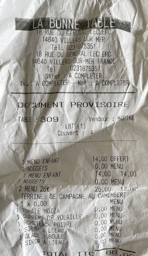 Read moreBon, bon, bon, que dire.. La bonne table... Ne porte pas bien son nom. Nous sommes entrés car la carte était simple et proposait des mets intéressants. Le menu avait un prix abordable et pour un restaurant sur la côte ça ne pouvait qu'être intéressant. L'ambiance y est chaleureuse, la décoration sympathique et les musiques de fonds étaient agréables. Voilà pour le positif. Ensuite nous avons mangé des plats sans saveurs, qui respiraient le réchauffé voir le surgelé. Premièrement, les ravioles au saumon sauce Thai, intitulé intéressant pour finalement se retrouver avec 3 pauvres ravioles clairement pas faites maison, baignants dans une soupe de crème elle-et-vire et de lait de coco, soupoudré de paprika pour la forme. Deuxièmement, le plat : une bavette très nerveuse, une pièce généreuse certes mais impossible a couper. Une fois tranchée, surprise ! L'intérieur est bleu alors que la cuisson demandée était saignante. La viande avait juste été snackée à la poêle quelques instants, c'est tout. La sauce béarnaise était bonne mais les frites qui accompagnaient la viande étaient farineuses, clairement surgelées et surtout elles n'avaient pas le goût de frites !? Le point positif est le serveur, qui a été d'une dignité exemplaire. Politesse, sercice efficace, celui-ci a retiré le menu de l'addition par geste en plus d'avoir proposé plusieurs fois de changer le plat par autre chose de la carte. Seulement voilà, le reste de la carte ne semblait pas être particulièrement mieux. Mon compagnon a mangé une soupe de poisson plutôt bonne mais clairement réchauffée et pas faite maison, et un lieu avec du riz. Le riz présenté en dôme avait le même goût que du riz Oncle Ben's, le lieu n'était pas frais. Nous n'avons pas pris de dessert, nous sommes partis avec la faim au ventre, nous ne...
