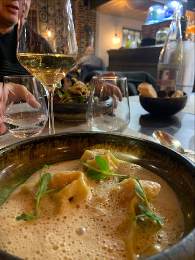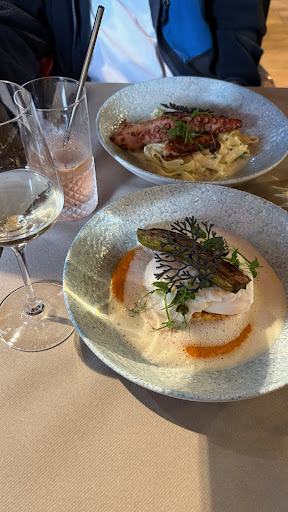 Read moreC’est un bel établissement qui propose un menu à 35€ avec entrée, plat, dessert. Ce qui est un vrai plus! Les plats proposés sont travaillés et bien présentés. Cependant je mets 4 étoiles car le cola maison est encore à parfaire: cela ressemble à une eau pétillante aromatisée à une saveur inconnue. Mon entrée qui était une langoustine sur un lit de purée de légumes verts était bien trop (trop) cuite. Quand à mon plat, poulpe avec tagliatelles fraîches avec sauce à l’ail, je l’ai trouvé quelconque. Encore une fois, le poulpe était légèrement trop cuit (pas comme la langoustine), et je ne sentais pas trop l’ail dans la sauce. Pour ce plat il fallait ajouter 10€ de plus et j’ai été déçue. J’ai tout de même fini mon assiette. Le dessert était bon. Peut-être que je n’ai pas eu de chance, tout simplement. Mais mes amies ont aimé ce qu’elles ont pris. Et ils ont également fait un plat sur mesure pour mon amie végétarienne, ce qui est appréciable. Le personnel est aimable. Je recommande tout de même cet établissement qui je pense, travaille sûrement à renouveler la carte régulièrement....