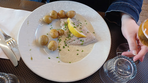 Read moreUn ensemble plutĂŽt positif malgrĂ© quelques points Ă revoir selon moi. RĂ©servation pour 12h, au vu de l'affluence nous avons bien fait ! Accueil d'une dame qui vous regarde de la tĂȘte aux pieds et sans sourire (je trouve que c'est moyen! DĂ©jĂ mauvaise image du resto mais le menu nous plaisait donc on tente! Heureusement notre serveuse, extra, une grande brune avec des lunettes trĂšs sympathique qui avait tjs le sourire et le mot gentil. Merci a elle! Nous avons goĂ»tĂ© plusieurs plats diffĂ©rents et nous avons vraiment aimĂ©. 24.90⏠entrĂ©e/plat/dessert. Raisonnable. Moules mariniĂšres/frites 18⏠la cocotte, bon... ça pour le coup je trouve que c'est cher mais c'est les mĂȘmes prix partout. Seuls bĂ©mols de ce repas : le prix des boissons qui est exhorbitant (5⏠un coca...); la quantitĂ© de frites un peu lĂ©gĂšre et pour moi le gros point noir est le menu enfant a 12 ou 13⏠pour un steak hachĂ©/frites, une glace et un verre de sirop! (Mais mĂȘme tarif dans les autres restaurants). CĂŽtĂ© hygiĂšne, des olives prĂ©parĂ©es sur le bar jonchĂ©es de grosses mouches (que nous n'avons pas eu l'occasion de goĂ»ter lors de notre apĂ©ritif et tant mieux finalement mais pourquoi?) et je l'ai signalĂ© quand mĂȘme en payant l'addition: "ah oui il faudrait que je les...