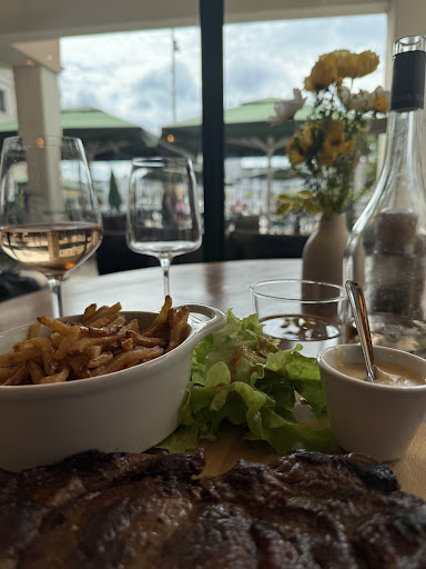 Bon, que dire... Hélas ce restaurant fait parti du triste club de ces endroits qui se sentent obligés de mettre une "musique de fond" qui n'apporte absolument rien à votre bien être. Passons...Mais à ma demande ils ont accepté d'en baisser le volume. Merci. Une seule autre table est occupée en plus de la notre. L'endroit est assez froid et impersonnel, comme tant d'autres, mais c'est propre et confortable. La carte propose une brochette de poulet. Je demande d'ou vient le poulet...La serveuse va se renseigner en cuisine et reviens me dire qu'il vient de NORMANDIE. Ah...Merci, et, est-ce un poulet fermier ou un poulet industriel? La serveuse repart et revient nous dire qu'il ne s'agit pas d'un poulet fermier. Autant je regrette que le produit ne soit pas de qualité, autant j'apprécie la franchise et l'honnêteté de la serveuse. Va pour un pavé de saumon (je n'en demande pas la provenance...), acceptable sans plus accompagnés de légumes grillés que je soupçonne d'avoir été simplement réchauffés de la veille. Un café liégeois (il est probable qu'il ne restait plus de glace café en cuisine)...Le tout accompagné d'un vin d'un Brouilly, très correcte, mais un peu chaud. 45€ par personne, c'est pas donné.