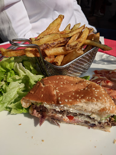 Unfortunately this was a disappointment. We don't mind the language barrier, at the end of the day we are in France so with Google managed to translate some of the menu. Husband had fish and chips and it was a big standard frozen piece of buttered fish you get in a supermarket, which was not great as you'd expect something fresh from a seaside restaurant. Sons beef burger was OK, although they cooked it medium without asking. I ordered the chicken burger and it was the worst burger I have even had. The chicken was like straight out of a cheap packet and heated, bland, no taste, strange texture, it wasn't grilled chicken breast or breaded, it was just weird. Daughter had chicken nuggets which were fine, again, straight out of a freezer. Chips were homemade but some burned to crisp. The place was not too busy once we sat down but service very slow, we felt almost ignored. It's a shame as Honfleur is beautiful and the muscle dished looked nice, just need to pay attention to your while menu not...
