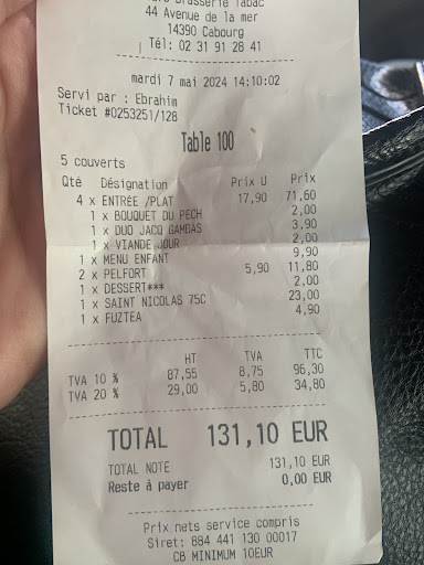 Pour finir je voulais prendre un dessert inclus dans mon menu, mais la aussi:RUPTURE DE TOUT LES DESSERTS!! DĂ©cidĂ©ment rupture de tout dans cette brasserie, rupture de plats, de dessert et surtout de sympathie et dâaimabilitĂ© de ceux qui y travaille !! Ă part la petite jeune serveuse blonde et le jeune homme qui rapporte les plats Ă table avec une queue de cheval avec un petit accent, trĂšs sympathique tout les deux, les pauvres de bosser la dedans!!