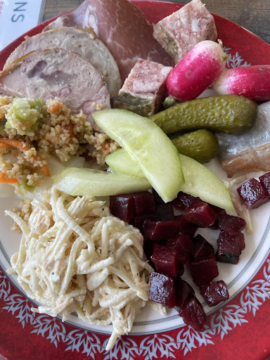 This place is awesome. We have been here at least three times. Started off day 1 with a massive salad, then cod in a mustard sauce and chips. It was very good and reasonable. Decided to go back on the Sunday for the seafood platter, brilliant Today went back again, salmon, rice and Ratatouille, again the food was brilliant Although the majority of the staff do not speak much English and our French is very basic, one member of staff did his best to help and it was appreciated.