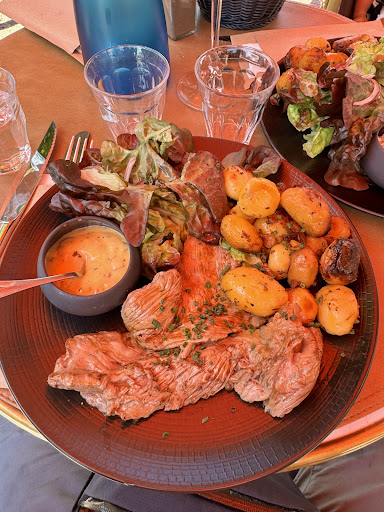 Read moreWe stopped here without researching since our kid was sleeping and couldn’t move on the cobblestone. Had the pleasure to eat some precisely medium grilled meat. The staff was very polite and accepted to take back half of the entrecôte to give it a little more grill for the kid. Very generous portions and side potatoes are good and different....