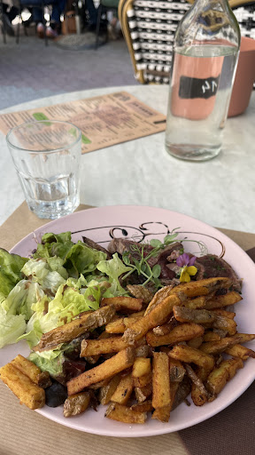 On y sert des plats maisons, réalisés avec goût et à des prix ma foi très correctes, et dont la carte change tous les jours. Laaa par exemple j’ai pris un tataki de bœuf avec des frites et de la salade et bah j’ai vraiment bien aimé !!