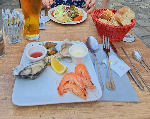 We visited this restaurant today, we had the set meal starter and main. My wife had the baked camambert with salad which was well presented and cooked to perfection. I had the seafood starter, consisting of whelks ,prawns and oysters. Having never had oysters I wanted to take the opportunity of trying them. The only word I can think of that describes them is exquisite. Having never had them before I have nothing to compare too but they get a 10 from me. We had moules and frites for main. Very flavoursome and perfectly cooked. The frites where crispy yet fluffy. Perfect. We had intended having a desert but we were to full. I had a kronenberg 1664 and my wife had lemonade. The staff were attentive and polite . We will definitely return. The meal with drinks was a very...
