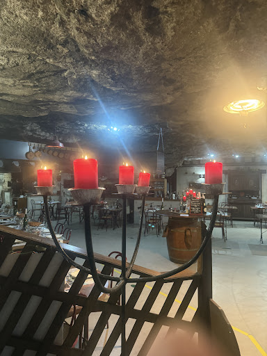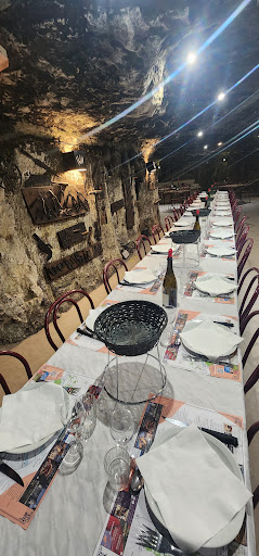 A dining experience. Look past the almost derelict looking exterior, push through a couple of doors and enter into a magical illuminated interior of the cliffs. This novel restaurant makes good use of a quarry cave, decorated with mining equipment, to host large pre booked groups and drop ins. The menu is rustic and fixed; you have to enjoy meat so diners with dietary limitations should avoid! The wine was very good and inclusive (I bought a case to take home). The staff were very friendly and attentive and between my broken French and their broken English, we managed to understand each other. A fun alternative to...