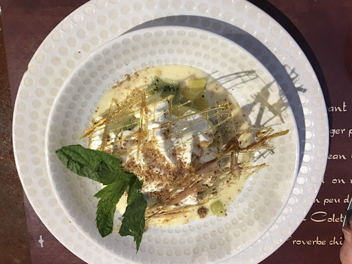 Such a delightful experience! Menu changes daily with two offerings of each, nearly every group took one of everything and shared and I would highly recommend you do the same! We walked in and all tables were reserved So we took counter service and got to sit right by all the action. It’s an open kitchen of two burners! The chef and his assistant weee so fun to watch cooking, the chef would show off how he cooked and the ingredients, so I say google the chefs table counter service if you can! The waitress speaks English otherwise all other staff speaking only French and the service was wonderful, friendly and warm. The chef and his assistant chef put out delectably dishes that this far has been the closest to home cooking, it feels like visiting friends! First Amuse Bouche was a beet mouse on toast, we ordered the croissant du poisson ( seafood filo egg roll if you will with a side of fresh gem lettuce salad and tomatoes) , mijote de sol(chicken stew on a potatoes bed, you will want to soak up every last drop with bread), dos de merlu ( steamed mussels and perfectly pan sautéed white fish, ona bed of mixed vegetables with two types of caviar), four cheese platter, and the marmalade dessert (a mousse served with cocktail of freah papaya, grapes, and banana topped with chantilly crème) … the chocolate terrine looked like a dream if only we had room! A must go ( a bit hidden but I highly recommend parking a Richelieu parking square and walking to city square and returning...