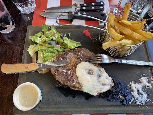 Read moreNous sommes arrivés au restaurant en demandant une table pour 3. Nous avons été accueillis très froidement par la responsable qui nous a demandé si nous avions réservé, ce à quoi je lui ai répondu que l'hôtel qui nous envoyait avait essayé d'appeler sans succès. Elle nous a alors dit qu'ils étaient peu nombreux et occupés, de façon très limite. J' ai alors tourné les talons mais elle a du coup demandé à mon mari si 30 minutes d'attente nous convenaient. Nous venions de faire de la route, étions fatigués et avons du coup accepté. Un serveur très sympathique s'est occupé de nous, nous avons plutôt bien mangé même si mon mari était un peu déçu de sa viande, qui ressemblait à ce que l'on peut manger à la maison. Au moment de régler, nous avons pourtant laissé un pourboire car ça fait parti de notre éducation. La responsable était redevenue agréable et même sympathique, elle a offert un petit cadeau à notre fils et une sucette. Je comprends que le manque de personnel doit être fatiguant, d'autant que le restaurant était plein et qu'il n'y avait que notre serveur et la responsable pour servir, malgré cela, je mets 3 étoiles car la 1ère mauvaise impression est...
