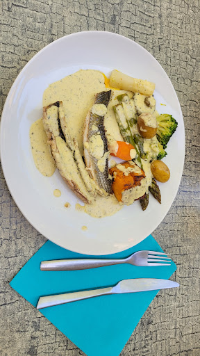 Read moreDes saveurs absolument delicieuses: huitres, puis dorade et filets de sole super frais, et cuits a la perfection. Accompagnement de gratin de courgette et dauphinois. Une trouvaille inattendue et bienvenue. N' attendez pas de decor: il n'y en a pas!! Mais, ce petit resto a l'arriere de la poissonerie se debrouille pour avoir charme et savoir faire indeniable. Et le bon blues en musique de fond est agreable.. Absolutely delicious flavors: oysters, then sea bream and sole fillets, super fresh, and cooked to perfection. Accompanied by zucchini gratin and dauphinois. An unexpected and welcome find! Don't expect a fancy decor: there isn't any!! But, this little restaurant at the back of the fishmongers manages to have charm and undeniable know-how. And the good blues music in the background...