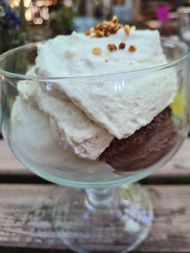 Fantastic meal, slice of meat pie, salad and vegetables. Desert 3 scoops of ice cream, chocolate, lemon and vanilla with home made whipped cream. And super strong coffee for finish. All delicious in a chilled outside seating, lounging area. Super friendly and...