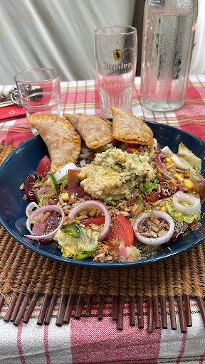 Read moreUn havre de paix, dans une clairière fraiche et ombragée. Impression d'entrer dans un salon de jardin : cabanes et animaux, déco entre vintage et babacool, tables, bancs et banquettes invitent à se poser pour une sieste ou pour feuilleter un des nombreux livres disposés ici et là, et qui sont autant d'invitations au voyage... Accueil tres agréable, simple et discret, serein, sans chichi. Le chat du domaine, lui aussi bienveillant, nous accordera quelques contacts de bienvenue. Menu 100% fait maison, sain et gouteux (une tarte coco à tomber par terre !), et copieux... Bière artisanale fraiche et fruitée. Bref, comme une envie de reviens-y ! Peut-être à l'occasion d'un de leurs...