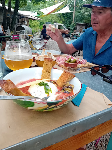 Read moreDécouvert par hasard sur la route des vacances, bel endroit calme et ombragé pour pause repas. Carte épurée avec 3 tartines au choix mais chacune de grande qualité et servie avec un accompagnement abondant et goûteux. Amateurs de frites, ce ne sera pas votre meilleure destination toutefois les bières brassées sur place compenseront ce manque. Desserts maison et basse-cour à proximité pour...