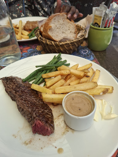 Repas pour 4 personnes. Serveuse-patronne agréable et souriante, même derrière le masque. Mais ne sait pas poser votre assiette devant vous. Elle vous les tend, vous devez les lui prendre des mains et idem pour débarrasser, il faut les lui passer. Amuse-bouche sous forme mini biscuits salés et cacahuètes... très très moyen... voir photo Trop trop longue attente. Vraiment trop trop longue. Les plats plutôt 'bôf'... voyez les photos : je doute que les frites, haricots, carottes et même la viande bien sûr, soient "maison"... ça fait très surgelés ou conserves réchauffées... Terrine lapin maison à peu près OK. Les huîtres étaient tièdes. Desserts choisis : mousses au chocolat. Là non non plus, rien qui vous emporte... Il y a un resto Allées Salengro entre 2 autres qui, lui, peut se targuer d'avoir des desserts digne de ce nom... Et toujours trop d'attente encore... Toutes nos excuses, mais pour nous, cela a plutôt été décevant, comparativement à bien d'autres...