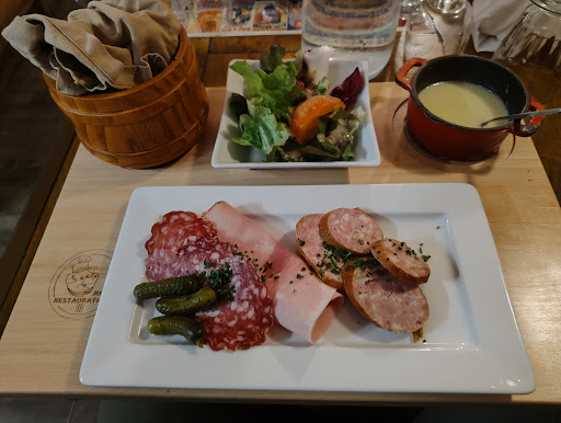 Read moreDe passage dans le Jura, il Ă©tait impossible de manquer une halte dans un restaurant traditionnel. Nous avons jetĂ© notre dĂ©volu sur ce lieu chaudement recommandĂ©. Il faut savoir que le nombre de tables n'y est pas trĂšs volumineux. Pensez donc Ă rĂ©server votre crĂ©neau de passage ! Concernant la carte, celle-ci est essentiellement tournĂ©e vers des plats Ă base de fromage de montagne (ça tombe bien, c'est que nous recherchions!). J'ai choisi une fondue aux morilles et ce fut un rĂ©gal ! L'endroit est rĂ©ellement atypique avec des meubles Ă l'ancienne et pour couronner ceux-ci, un chemin de fer miniature surmontĂ© l'ensemble des lieux pour y faire circuler une lettre qui saura capter l'attention des plus jeunes. Attention, jeunes parents, prĂ©voyez de quoi assoir votre bĂ©bĂ© car les lieux ne s'y prĂȘtent pas pour le coup. MalgrĂ© ce petit dĂ©tail, nous vous recommandons fortement ce lieu lors de votre passage oĂč au dĂ©tour...