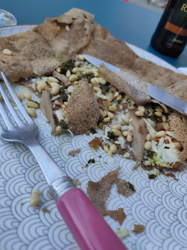 Read moreDîner le mardi soir, durant le marché nocturne. L'expérience débute par une file d'attente, la réservation n'étant pas possible ce soir-là. Cette affluence, probablement due à l'événement, semblait créer une tension palpable chez la propriétaire et l'équipe, bien que le service, une fois à table, soit resté poli malgré une certaine lenteur compréhensible face au nombre de convives. La présentation se démarque de ce que l'on pourrait attendre d'un restaurant : les crêpes sont servies roulées dans un papier, à la manière d'une vente à emporter, et placées dans un mug. L'absence d'assiette, de couverts et de salade d'accompagnement, contrairement à ce qui peut être vu sur certaines photos en ligne, est notable. Cela oblige le client à manipuler la crêpe directement dans son papier, ce qui peut s'avérer peu pratique. En somme, si le produit de base est correct, l'expérience globale est fortement influencée par les contraintes logistiques du service en soirée de marché et un choix de présentation qui privilégie la simplicité au détriment du confort de...