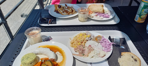 Cela ressemble à un restaurant d’autoroute aussi bien niveau environnement, système de service et qualité… Self en plateau. C’est un boucher traiteur donc on pourrait imaginer que la viande est bonne et qu’il y a du choix. Eh ben… non malheureusement. Ou alors ok pour acheter la viande crue et se la faire cuire soi même car eux ne savent pas faire cuire en fonction des choix de la clientèle. J’ai choisi un steak haché à point, il était bien cuit voire semelle. Ma fille qui adore la viande rouge saignante a choisi un rumsteck qui était à point. Elle l’a rapporté. Quelques minutes plus tard, son badge sonne, elle va chercher son assiette… elle revient la mine déconfite avec une bavette au lieu du rumsteck et toujours cuisson à point au lieu de saignante… et pas tendre pour le coup. Du coup toutes les deux nous avons laissé notre viande ! Et nous avons été ailleurs prendre un dessert car ceux présentés en vitrine faisait industriels. Le café allait. Le service bah yen a pas hormis derrière le comptoir et à la caisse. Les deux personnes n’étaient pas désagréables. Perso je ne comprends pas la note de 4,7 ! Déçue. Après c’est pas excessif mais on est reparti avec la faim et la...