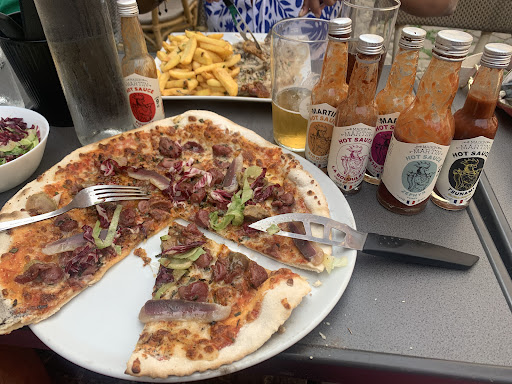 Read moreĂ FUIR. Dommage que l'on ne puisse pas mettre 0 Ă©toiles. BOUTS DE FERAILLE DANS LES PIZZAS, rĂ©ponse du restaurateur : "c'est normal c'est la brosse pour nettoyer le four". L'attente est interminable et pas uniquement pour notre table toutes les tables ont attendu au minimum 1h voire 1h30 pour certains. Nous sommes installĂ©s dehors il se met a pleuvoir, au bout de 10 min sous la pluie nous dĂ©cidons de rentrer a l'intĂ©rieur car il n'y a pas de parasol. Le personnel ne nous propose pas de rentrer a l'intĂ©rieur ça serait apparemment trop demande de leur part. Nous nous installons donc Ă l'intĂ©rieur aprĂšs dĂ©jĂ 40 min d'attente pour 2 pizzas et 1 assiette de pĂątes. Le serveur nous ramĂšne les couverts sans les installer sur la table avec des couverts plein de calcaire. Le restaurateur passe ensuite nous demander si nous avons commandĂ© alors que cela faisait dĂ©jĂ 1h. Nous avons ensuite attendu 35 min de plus avant d'etre servi les pizzas et 10 min de plus pour les pĂątes. Les pĂątes sont a peine tiĂšdes et visiblement rĂ©chauffĂ©es de la veille au micro onde. Elles n'avaient pas de goĂ»t. Les pizzas sont fades et le jambon est mauvais. Il faut avoir de la chance sur la taille de la pizza pour espĂ©rer ne pas se retrouver avec une pizza taille enfant. Nous avions pris du prosecco que nous n'avons pas bu car sans bulles, la bouteille devait ĂȘtre ouverte depuis bien trop longtemps... Le frigo Ă l'entrĂ©e est Ă©teint, et une armĂ©e de mouche est prĂ©sente dans le restaurant sans doute attirer par les dizaines de dĂ©chets prĂ©sents dans le restaurant (cannettes, assiettes sales posĂ©es sur des tabourets). Au moment de payer, nous signalons au restaurateur que les pĂątes n'Ă©taient pas fraĂźches et rĂ©chauffĂ©es au micro onde. En suit une vague de mauvaise fois alors que la forme des pĂątes dans l'assiette ressemblait Ă celle d'un tupperware.
