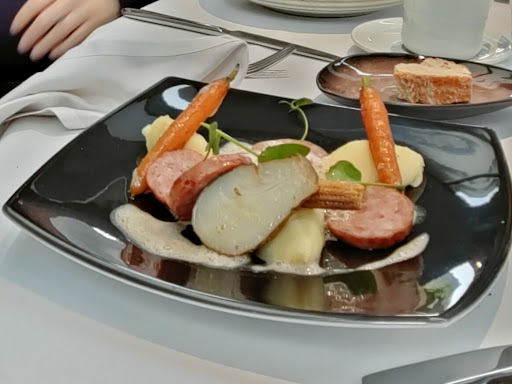 Read moreUne découverte Un beau bâtiment avec parking Gestes barrieres masques pass sanitaire respectes Un WC impeccable Une salle sobre propre agréable nous ne sommes pas l un sur l autre Un personnel souriant poli qui nous accueil bien Dès plats très bien présentés jolis succulents Une entrée coquille Saint Jacques super présentation délicieuse Du pain chaud à la patate Un poisson avec légumes très bon Dès fromages : un fromages à découvrir sous trois façons Dès desserts au même niveau Une belle carte des vins Seul bémol : il n y a pas de vestiaire les manteaux longs des dames traînent par terre Un restaurant qu on n entend pas mais qui mérite votre venue Un bon repas une...