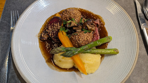Read moreRestaurant EXCEPTIONNEL par le rapport qualité-prix offert. Un niveau de service rarement vu dans un restaurant, par exemple si vous hésitez avant de commander un vin on vous le fait goûter si celui-ci est disponible au verre...pour du blanc , du rouge.... rarissime et donc à noter, féliciter et encourager comme exemple pour d'autres restaurants. Enfin les plats sont tous très bons.J'ai personnellement commandé un filet d'agneau...cuisson parfaite, viande très tendre, un délice qui m'a conquis. Nous avons été ravis même si nous n'étions que de passage . Par contre heureusement que nous avions réservé à l'avance car en plein midi et en semaine (Lundi) le restaurant était complet.