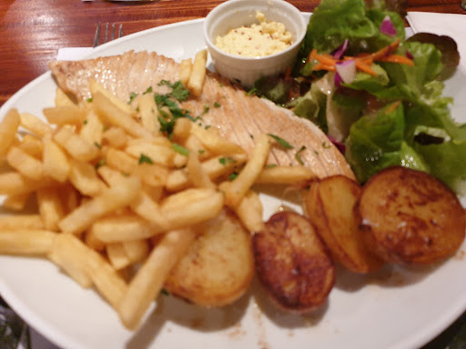 Read moreOffre alléchante, recommandée par le routard, nous étions cinq prêts à découvrir ces fabuleuses recettes affichées... Et puis douche froide qd on arrive, serveuse sympas qui demande à la patronne (Maeva après vérification sur Google) pour nous installer. Et là, nous n'avions pas réservé, et cette impression de déranger Maeva, qui répond sèchement sans prendre la peine de nous regarder, "non pas de table" puis file vers les cuisines. Alors Mme Maeva, je comprends que le restaurant puisse être full, que ça soit le coup de rush du soir à 21h, mais un simple, "désolé messieurs dames, je n'ai pas de solution pour vous ce soir, n'hésitez pas à revenir nous voir..." Ça s'appelle un service client, votre restaurant ne s'arrête pas à 80 recettes autour du thon. C'est aussi un accueil, un service, une image... Donc finalement, ça aura été "le pêché gourmand " à Carnac. Et là tout y était, le service, les sourires, un service full aussi mais des serveurs et serveuses au taquet et aux ptis soins pour nous. Bref, la vraie...