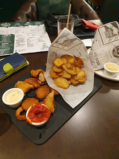 Nice environment, rock music is a bit tiresome but the 'Tapas'? I have struggled to find a good meal on my latest trip to lanester and was excited when I saw tapas on the menu. Tapas is commonly known as small plates of food originating from Spain. Here it's fry whatever is laying in the bottom of the freezer and pile it on a platter from onion rings to vegetable samosas and a couple of other unidentified fried things. You need to do better else you won't be...