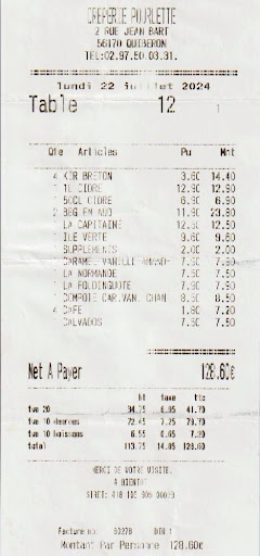 Bonjour, A FUIR Nous sommes allés en famille dans ce restaurant (4 adultes et 2enfants) un soir de juillet. En voulant commander l'apéritif, il n'y avait pas de jus de pommes pour les enfants alors que c'était indiqué sur la carte...Problème de gestion des stocks. De plus, les crêpes étaient sèches, elles s'émiettaient telle une crêpe dentelle. Pour la crêpe à l'andouille, 2 ridicules tranches. On a l'impression d'être pris pour des...andouilles. Si vous aimez le service en décalé, vous êtes le bienvenu. En effet, le premier à avoir été servi terminait son assiette et le dernier n'était toujours pas servi. Pas de priorité donnée aux enfants pour le service. Si vous voulez poursuivre l'aventure, je vous invite à aller aux toilettes. Rouleau de papier toilette par terre ainsi que le rouleau d'avance. Et une serviette de toilette pour tous les clients pour s'essuyer les mains. Une visite du service hygiène serait la bienvenue! Très déçus de notre soirée, avons averti la serveuse qui a prévenu le "responsable" qui était très étonné et qui a posé la question aux autres tables de savoir comment cela c'était passé pour eux. Aucune remise en question. Lorsque nous nous sommes levés à la fin du repas pour aller régler, le "responsable" a demandé à ses collègues "ils ont payé?". Nous-a-t-on pris pour des voleurs et des gens malhonnêtes? Plus jamais nous reviendrons dans...