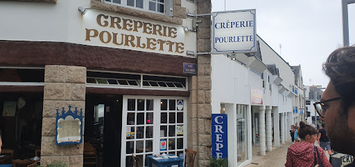 Read moreMi-juillet 2024, nous séjournons une semaine chez des amis à Vannes. Ce lundi 22 juillet, nous cheminons vers Quiberon et nous allons déjeuner dans cette crêperie. Heureusement que nous amis avaient réservé. En effet, il est midi 15 et la salle est comble et il en est de même pour la salle annexe. Au cours de notre repas, nous verrons plusieurs personnes qui n’avaient pas réservé devoir rebrousser chemin. Pour ce qui nous concerne, nous sommes bien accueillis, mais avons un peu de mal à nous assoir car c’est vraiment exigu. Nous prenons 4 kirs bretons, puis 4 galettes et ensuite 4 crêpes. Tout est fait devant nos yeux (par deux personnes) car nous sommes tout proches (à environ 1 mètre) du lieu des préparations. Les galettes et les crêpes sont savoureuses et bien garnies. Le cidre à la pression est excellent. Les serveuses font preuve de prouesse et passent avec agilité entre les tables. Conclusion : je recommande cette crêperie, pour sa nourriture, le professionnalisme du personnel, mais il ne faut pas oublier...