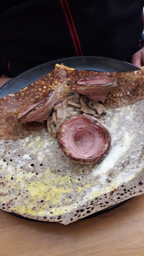 Read moreAlors je ne sais pas si nous sommes tombés sur un mauvais jour, mais la serveuse qui s’est occupée majoritairement de nous était vraiment limite. L’accueil était froid. Au moment de la prise de commande on nous arrache le menu qui était juste sous nos mains sans prévenir et sans excuses... très désagréable. Designer les clients par le plat qu’ils prennent est à mon goût assez irrespectueux quand c’est dit derrière le comptoir, d’une serveuse à un cuisinier (et oui, dommage nous avons entendu) « j’attends de savoir si la sèche va prendre un dessert » : parlant donc d’une personne de notre groupe qui a pris une galette sèche. Chapeau. Et puis bon sur la fin la caisse n’est pas du tout précise, il faut ajouter les prix un à un, ce qu’il fait qu’il y a des mélanges entre plats/desserts/boissons s’ils ont le même prix, donc çela peut engendrer des erreurs, ce qui a été le cas. Même après avoir demandé les détails du recap du ticket de caisse. C’est une fois sortis en relisant le ticket que nous avons vu le pichet compté en trop. Après ceci reste le moins important en comparaison au reste dit précédemment. Dommage, car les galettes et les crêpes étaient excellentes, mais on ne peut pas dire de même de la...