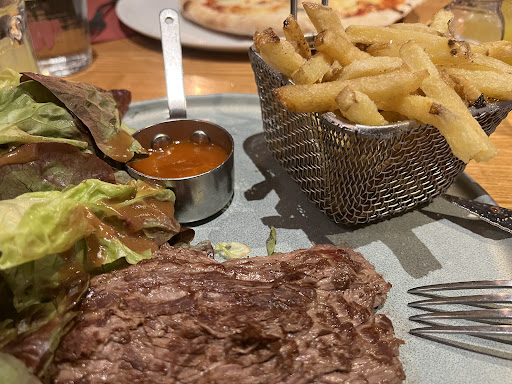 Read moreChecked in for lunch and really had a great time. We had the Pizza Fromages, salad with goats cheese and the Bavette Aloyau. All three dishes were absolutely delicious! Not to mention the mousse au chocolate afterwards! Service was extremely friendly and attentive and we felt absolutely welcome . Despite of the picturesque location right at the famous bridge we sat inside as it was a hot day. The interior is unique and worth a look inside! We definitely recommend the l’Amoric and will visit again, should holidays bring us here again. Thanks to the team of this great pub...