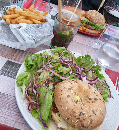 Read moreMa mère avait réservé dans ce restaurant pour 3 personnes en pensant y trouver autre chose que des burgers, bagels... alors certes nous y trouvons aussi des plateaux de fromages / charcuteries. Nous avons malheureusement été surpris de ne pas trouver de « véritables plats ». La carte est beaucoup trop restreinte et d ailleurs, elle devrait être affichée sur internet car nous n’avons pas été la seule table de surprise par cette carte. Les prix restent corrects mais nous aurions aimer que la serveuse nous fasse goûter le vin au vu de son prix (qui coutait tout de même 30 euros la bouteille - bouteille de rouge la plus chère donc vous en trouvez à des prix plus abordables !)., La salle était très voire trop bruyante et malheureusement pour nous, un groupe mangeait au restaurant ce soir là. Il aurait peut être été plus judicieux de séparer le groupe des autres clients. Le cadre est atypique, la décoration est sympathique, la cuisine y était bonne mais sans folie (les burgers de faim2loup à Quimperlé sont biens meilleurs pour un prix similaire...). La cuisine y est cependant très généreuse et la serveuse était très gentille et souriante. C’est certainement ce qui rattrape la note.