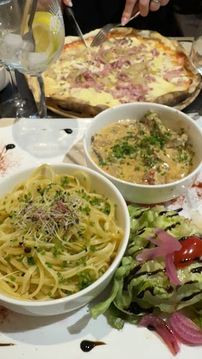 Read moreNous sommes entrés par hasard dans ce restaurant car nous étions de passage mais le hasard a bien fait les choses Nous avions très faim et nous avons commandé entrée avec pizza La personne chargée du service nous a mis en garde plusieurs fois sur la taille très importante des pizzas et nous avons trouvé très professionnelle son attitude qui ne poussait pas du tout à la consommation ! Cela ne nous a pas empêché de prendre quand même les entrées très bonnes et les pizzas ÉNORMES :-) Assiettes copieuses et très bonnes Grand choix de desserts très copieux aussi et très bons La terrasse abritée du soleil et avec un léger vent était très agréable Il y avait du monde mais c'était très calme Service impeccable et agréable Tarifs dans la moyenne mais quantité et qualité nettement au dessus Nous recommandons de faire un détour et si nous repassons dans le secteur nous le ferons avec plaisir ce détour Merci pour cet...