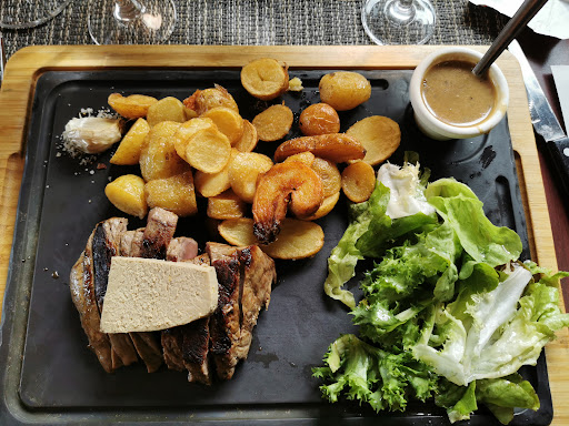 Read moreLe bon point c'est le service, nous avons eu une serveuse serviable et très souriante. Sur 2 menus à 29.90€, 1 était principalement axé sur la viande, belle entrecôte, viande tendre. Pour le 2ème menu , lui axé plutôt sur le côté " mer", des beignets d' encornets tièdes, pas du tout croustillants avec une pâte très lourde, la marinade de thon n'est pas à la hauteur du prix du menu, l'assaisonnement n'est pas très réussi, ensuite quelques crevettes, le tout accompagné de frites avec une soit disant mayonnaise épicée, j'ai bien regardé mais je ne l'ai pas trouvé malgré une explication un peu simplette du cuisinier !!! Le croustillant de fromage au bacon était malheureusement presque froid avec un fromage que j'aurai bien aimé coulant !!! Les desserts étaient bons. Les menus ne sont pas à la hauteur du prix. J'ai été déçue. Je n'y reviendrai...