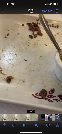 Elle me propose au bout de 5 minutes de changer, mais je refuse car vraiment, on m’a prise pour une idiote. C’était bien un tartare car les morceaux de cornichons et d'oignons ainsi que le goût de la sauce tartare ne sont pas apparus par magie.