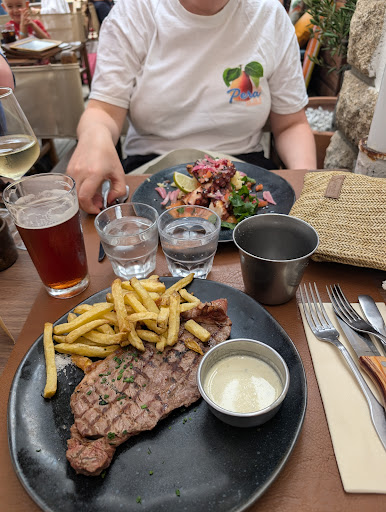 I went here with a friend for diner. We waited a long time before being able to order but we didn't had the drinks menu but the waitress took our order first. First bad news, no more fries. How is it possible for a restaurant not to have fries when they serve steaks, burgers and mussels?? The food arrived very quickly strangely (only reheated maybe or precooked) but she hadn't took our drinks order yet... Few minutes later, I saw several plates coming out with fries. I was so offended. So I ask the waitress and she said it was the last ones and a coworker went to buy some. But every single dish came out with fries. So even more offended by her lie. So I ask her again to give me some and received it with little apologies. And unfortunately, the fries are frozen... What a shame for a so call "pub and steakhouse"!