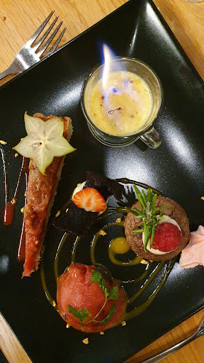 Read moreSchönes kleines Restaurant mit ausbaufähigem Service und ebensolchem Ambiente, da zT auf Plastikbambus gesetzt wird. Es gibt nur 3 Menüs, was FÜR das Restaurant spricht. Alle beinhalten 3 oder 4 Gänge (+Fromage) und eine sehr gute Weinkarte mit extrem zivilen Preisen. Auch die Preise für die Menüs sind im unteren Bereich angesiedelt und damit gut erschwinglich. Wir hatten das Menu du Chef mit zartem Thunfisch-Carpaccio sowie foie gras. Den Kalbsbries als Hauptgericht trifft man nicht mehr allzu häufig an, weshalb die Wahl darauf fiel. Zart, kross und würzig, mit schmackhaften Gemüsebeilagen. Kleine und feine Käseauswahl (einer mit intensivem Nussaroma, ein Stück mit Algen, das dritte ein aromatischer Camembert). Die Nachspeisen waren optische und kulinarische Kunstwerke, das gebackene Ornament ist aus Buchweizenmehl. Als Weinbegleitung wählten wir einen fantastischen weißen trockenen, extrem angenehm fruchtigen Sauvignon Blanc vom Château Nodoz, von dem wir uns mindestens eine Kiste beim Erzeuger gönnen werden. Preise siehe Fotos. Reservierung...