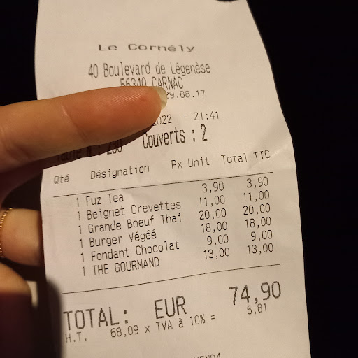 Es war eine schöne Tatsache, dass ich an den Besitzer des Le Cornély geraten bin. Wir haben daraufhin einen Tisch reserviert und sind das kulinarische Abenteuer eingegangen. Die Speisekarte schon vorab etwas studiert, war diese äußerst interessant mit asiatischen Einflüssen. Wir kamen im Restaurant an, das Personal war informiert und es hat alles wie am Schnürchen funktioniert. Hier muss man aber sagen, es kam eine Gruppe von 17 Personen und diese wurde mit dem Essen bedient, jeder bestellte fast einen anderen Hauptgang, auf Zeit. Hut ab an die Küche, neben den normalen Gästen solch einen Tisch ohne Vorkommnisse zu bedienen. Wir wählten Stockfischbällchen (ACCRAS DE MORUE) und panierte Krevetten im Panko-Mantel (CREVETTES PANÉES PANKO) - beides war frisch zubereitet und einfach genial. Es hatte an dem Abend gepasst und wir hatten Lust darauf. Anschließend wurde ein thailändischer Salat mit Rindfleisch serviert (SALADE THAÏ AU BOEUF MARINÉ) welcher ausgezeichnet war. Das Rindfleisch ist mariniert und wird kalt serviert, sodass der Salat durch das heiße Fleisch nicht zusammenfällt. Hinzu kam ein Burger nach dem Tagesmenu, einfach fein. Es hat gestimmt! Die Portionen, wenn man eine Vorspeise nimmt, auch ohne, sind sehr ausgiebig bedacht. Wenn hier jemand hungrig raus geht, kann man nicht glauben. Am Schluss musste es eine Variation von Zitrone (TARTE AU CITRON DÉSTRUCTURÉE) sein, es war zu viel für uns - aber äußerst lecker. Die Preise mögen etwas im oberen Bereich für die Bretagne liegen, sie sind aber korrekt mit der frisch verarbeiteten Zutaten. Was uns auch gefallen hat ist die Lage des Lokals. Es liegt etwas abgelegen in einem ruhigen Villenviertel von Carnac und es kommen halt Gäste, welche das Lokal kennen und die Preise akzeptieren. Im Zentrum von Carnac herrscht halt ein Preiskampf, wer günstiger das Crêpe oder die Pizza verkaufen kann - braucht das Le Cornély nicht! Danke, dass wir bei euch sein durften, wir...