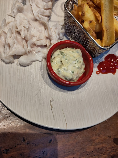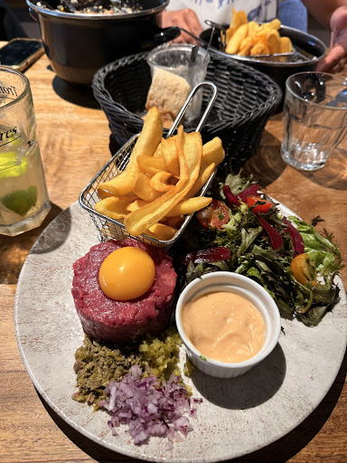 Read moreEndroit très beau mais cuisine médiocre et prix prohibitifs. J'y reviendrai pour boire un verre seulement, sur la jolie terrasse face à la mer. Ne comptez pas sur le moindre petit bol de Bretzels ou de cacahuètes avec votre apéro. Vous n'aurez rien ! Les moules (16,90€ !) étaient bonnes mais la base de toutes les recettes est "moules marinières" : le chef ajoute simplement un peu de la sauce de votre choix sur le dessus. Alors à la fin, vous n'avez plus que la sauce marinière, et le gorgonzola a disparu. En plus, j'ai trouvé au moins 15 moules vides (et les moules n'étaient pas tombées au fond de mon plat). Les frites ne sont pas faites maison. La coupe de glace c'est 8,9€... Menu enfant 12€ pour 1 petit verre de sirop à l'eau, poisson-frites (deux énormes arrêtes trouvées, voir photo) Et une boule de glace. C'est très cher pour ce que c'est. Et puis le service laisse franchement à désirer ! Notre serveur principal était efficace et aimable mais les autres... Ça se lance des vannes au-dessus de notre table comme si on n'était pas là... Vous le dites si on...