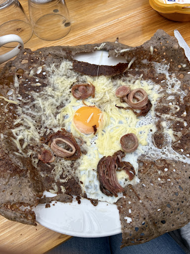 Friendly staff and efficient service with some gluten free options using blé noire (buckwheat). We had the blé noire burgers which were good though my vegetarian version without cheese (as I’m no good with dairy) was very limited, just vegetables and potatoes with the buckwheat “bun”, reasonable tasty but should be substantially cheaper than the €19 charged for the meat version. Good location near St...